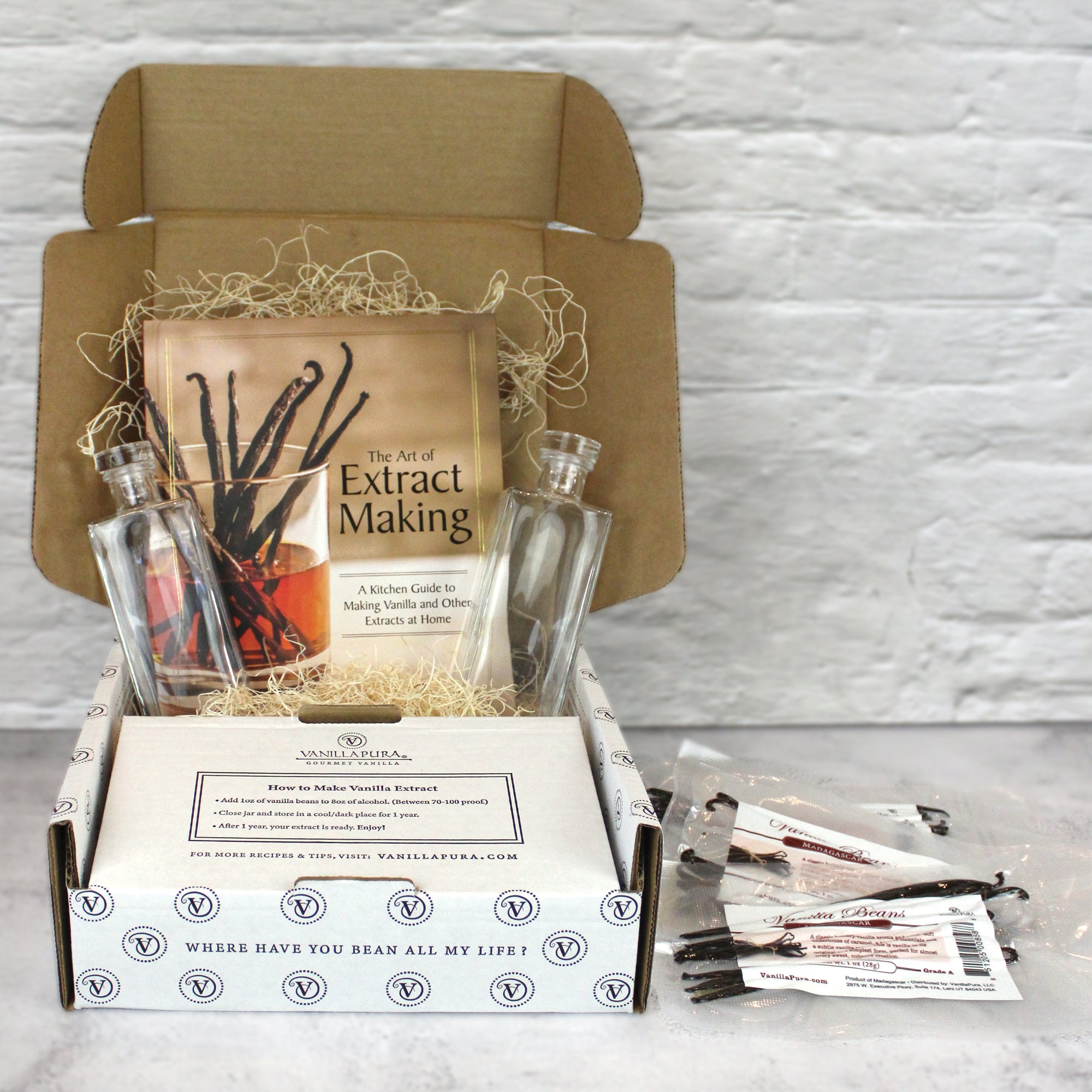 Throw an extract making party with 5-6 friends. We'll provide the beans, the bottles, instructions, a gift box and our best-selling book, if you choose. You and your 5-6 friends only need to provide the spirits! Have cocktails and/or mocktails together, make extracts and learn about the different varieties of vanilla and the art of making vanilla extracts at home.Β