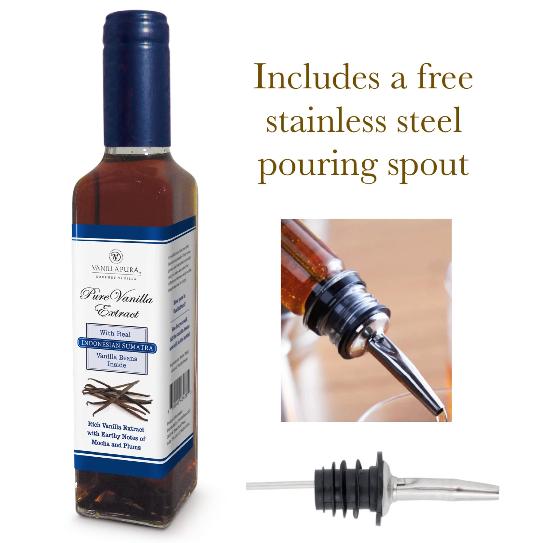 Every 8oz bottle of VanillaPura extracts comes with this stainless steel, no-mess pouring spout at no additional charge.