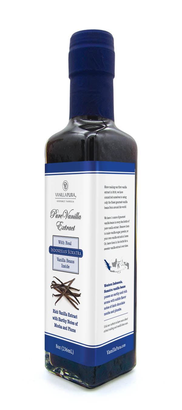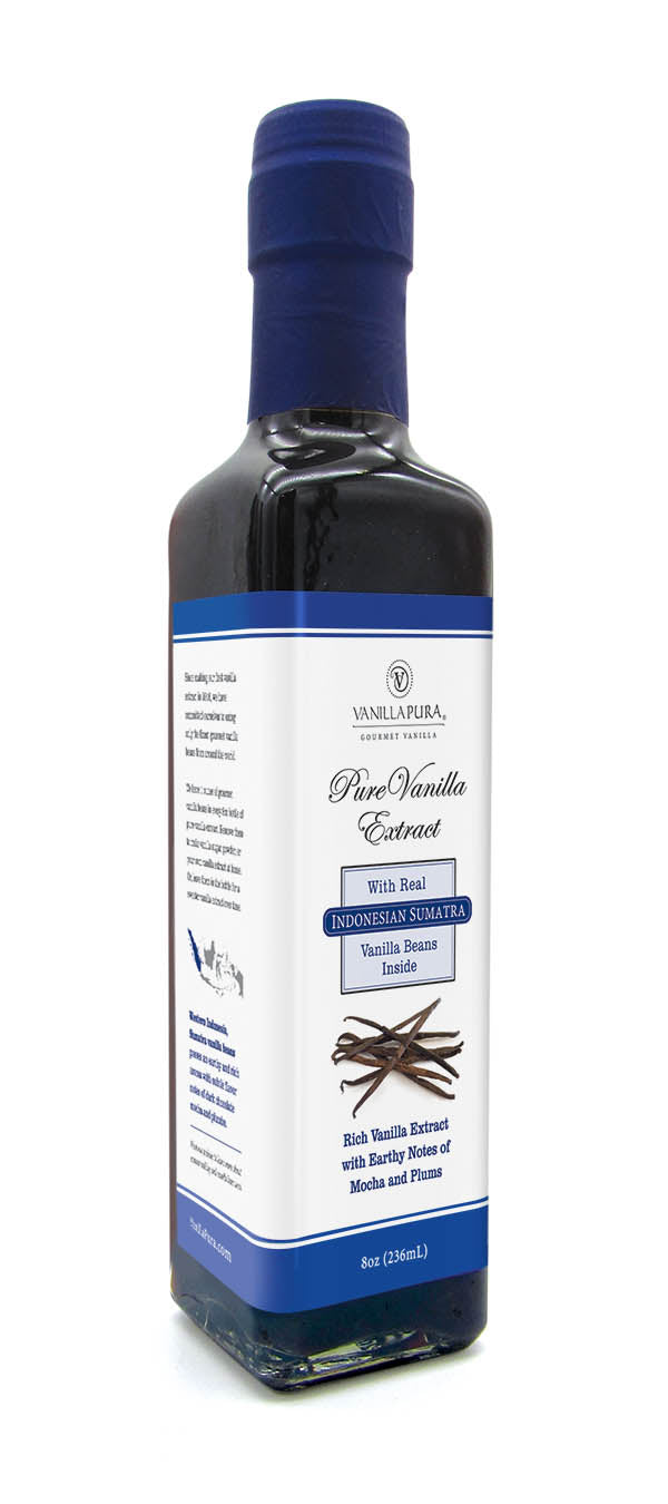 Indonesian Sumatra Pure Vanilla Bean Extract - 8oz With 1oz of Vanilla Beans in the Bottle (Retail)