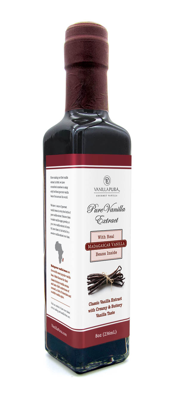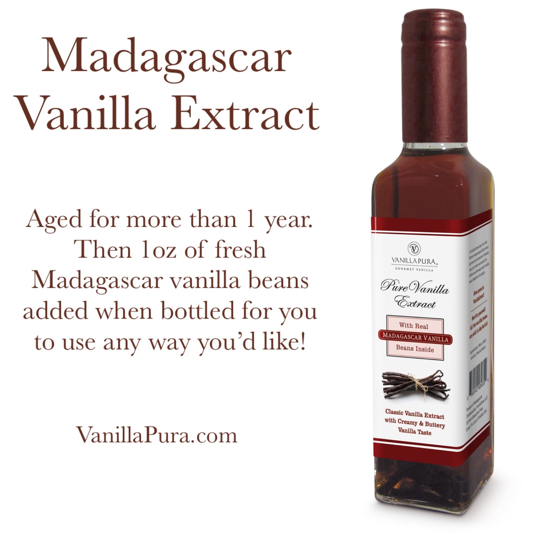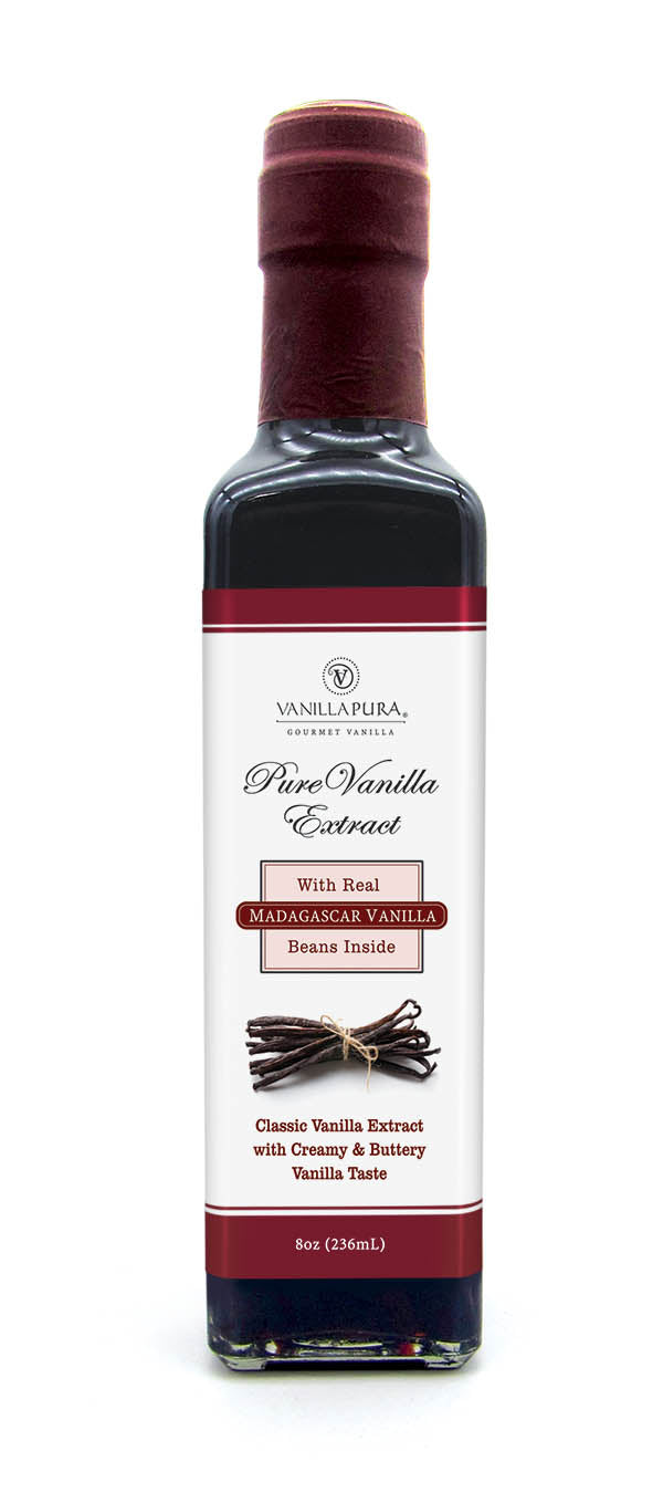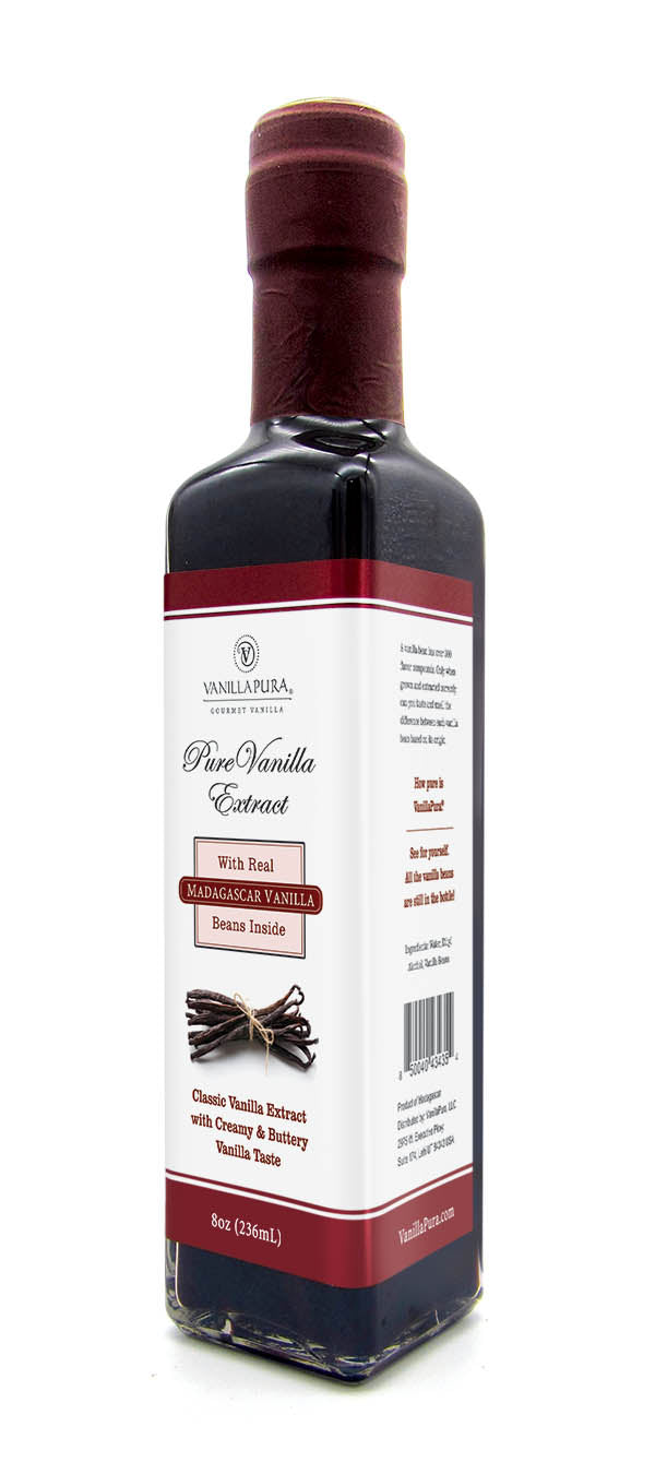 VanillaPura extracts are the only extracts in the world with all the vanilla beans still in the bottle. That's right, 1 full ounce of new vanilla beans is in every 8oz bottle of extract. Using our proprietary extract methods, we age our vanilla extract and then we add 1oz of fresh, new vanilla beans at the time of bottling for even more vanilla sweetness. The result is a rich extract experience that enhances the taste and aroma of more than 300 flavor compounds in every vanilla bean.
