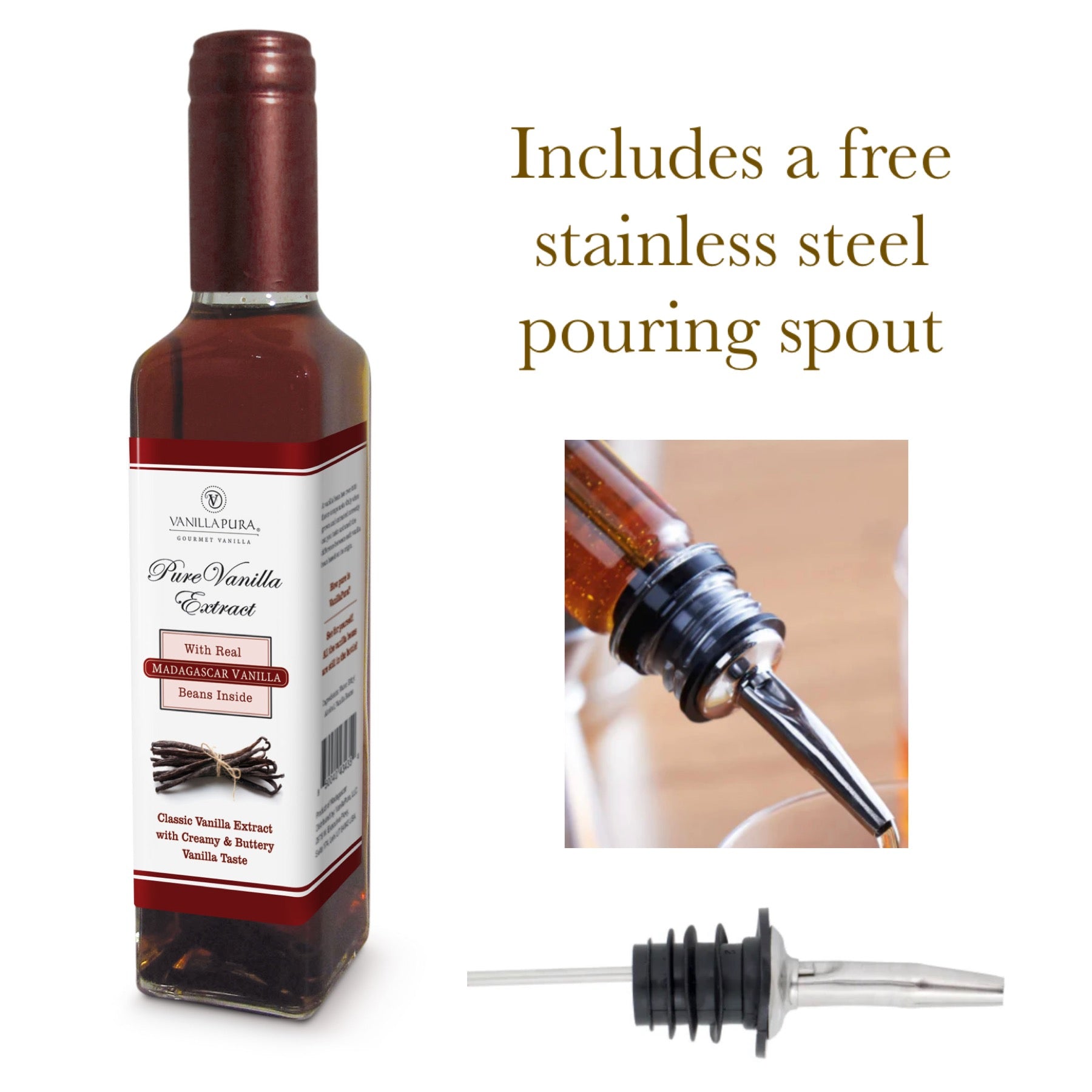 Every 8oz bottle of VanillaPura extracts comes with this stainless steel, no-mess pouring spout at no additional charge.