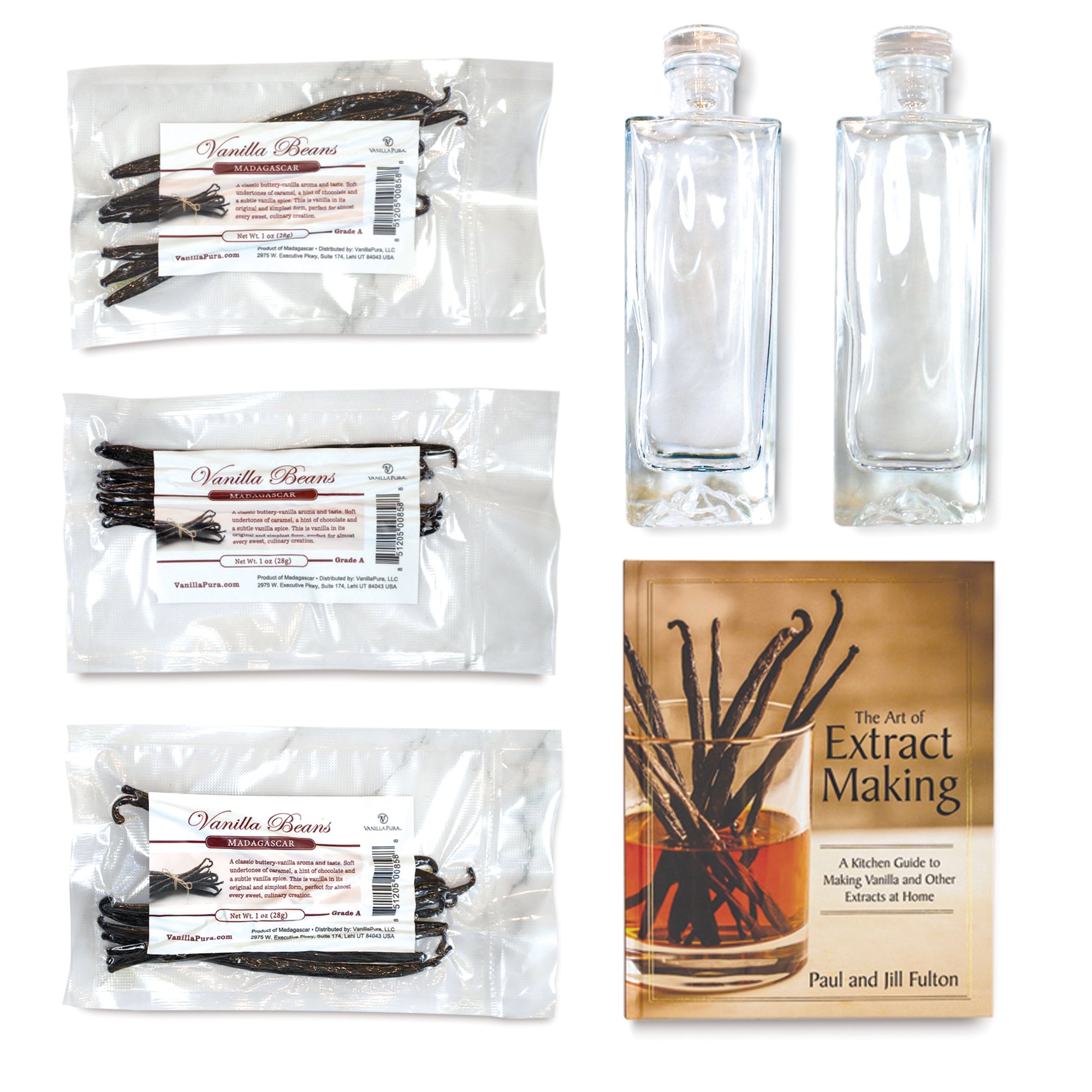 Nuestro kit completo de elaboración de extractos incluye 1 oz de vainas de vainilla, una botella de vidrio de 8 oz y nuestro libro, The Art of Extract Making, que incluye un diario de elaboración de extractos. Se entregará en una caja de regalo bellamente decorada que será el regalo perfecto para usted, sus amigos y su familia. Listo para regalar, no requiere envoltorio.