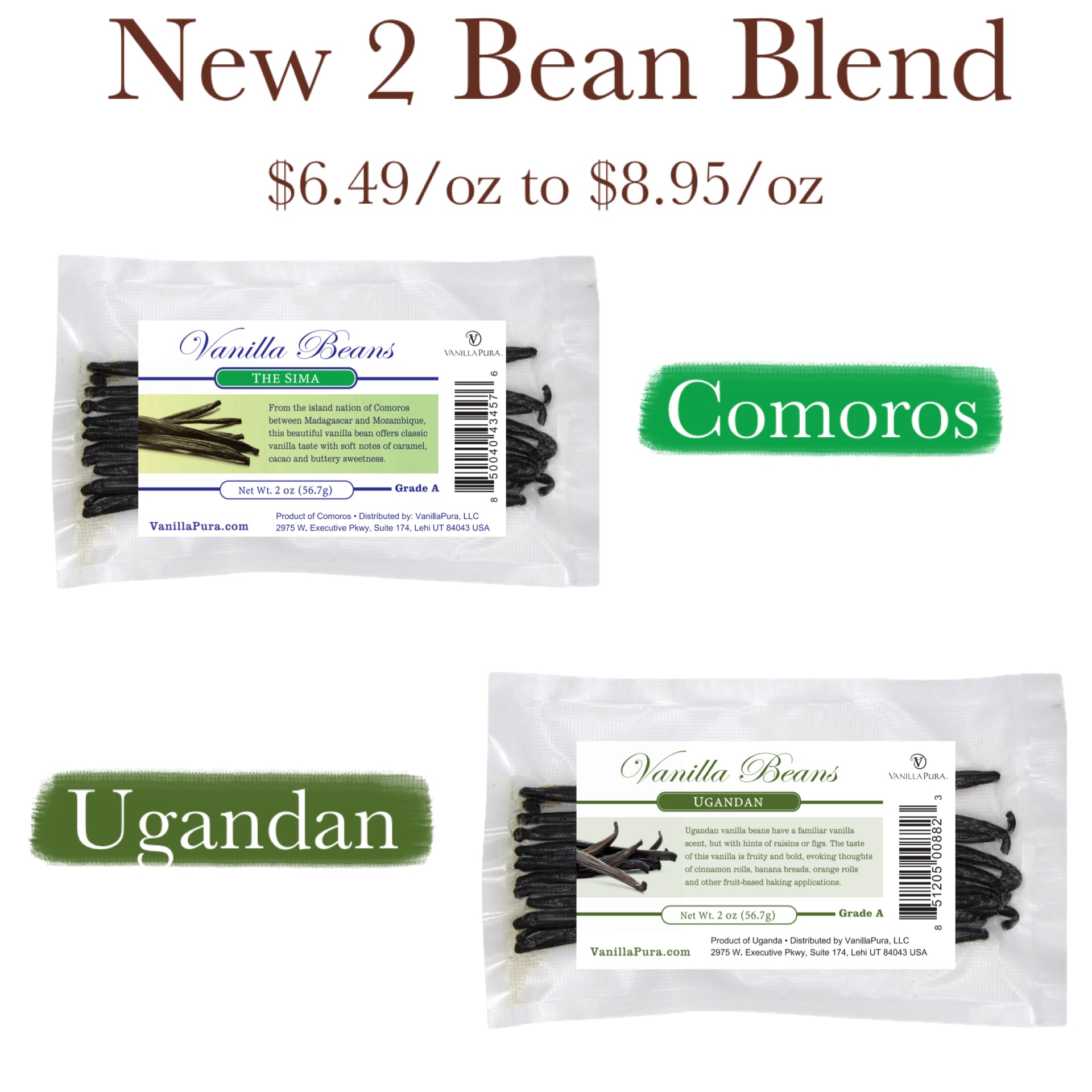 | Orígenes de vainilla: | Puede incluir vainas de vainilla de México, Perú, Ecuador, India, Costa Rica, Hawaii, Madagascar, Sri Lanka, Uganda, Tanzania, Uganda, República Democrática del Congo, Reunión, Comoras, Mauricio, Reunión, Tonga, Marquesas, Indonesia, Papúa Nueva Guinea, Uganda y otros. |