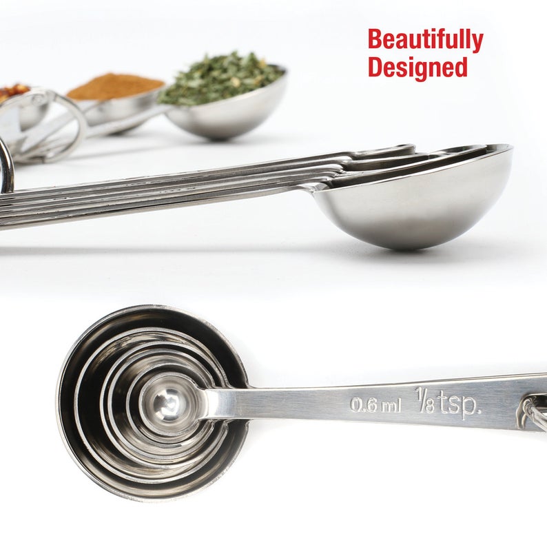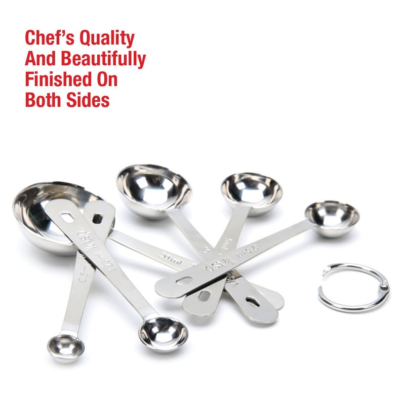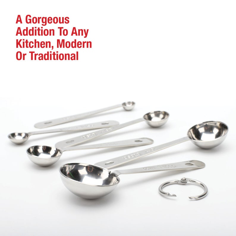 Nuestro juego de cucharas medidoras redondas de acero inoxidable pulido, con un hermoso acabado, es una calidad de chef profesional y puede ser utilizado en cocinas comerciales y por panaderos y cocineros caseros por igual. ¡Consiente a ese chef especial en tu vida con un regalo elegante y práctico!