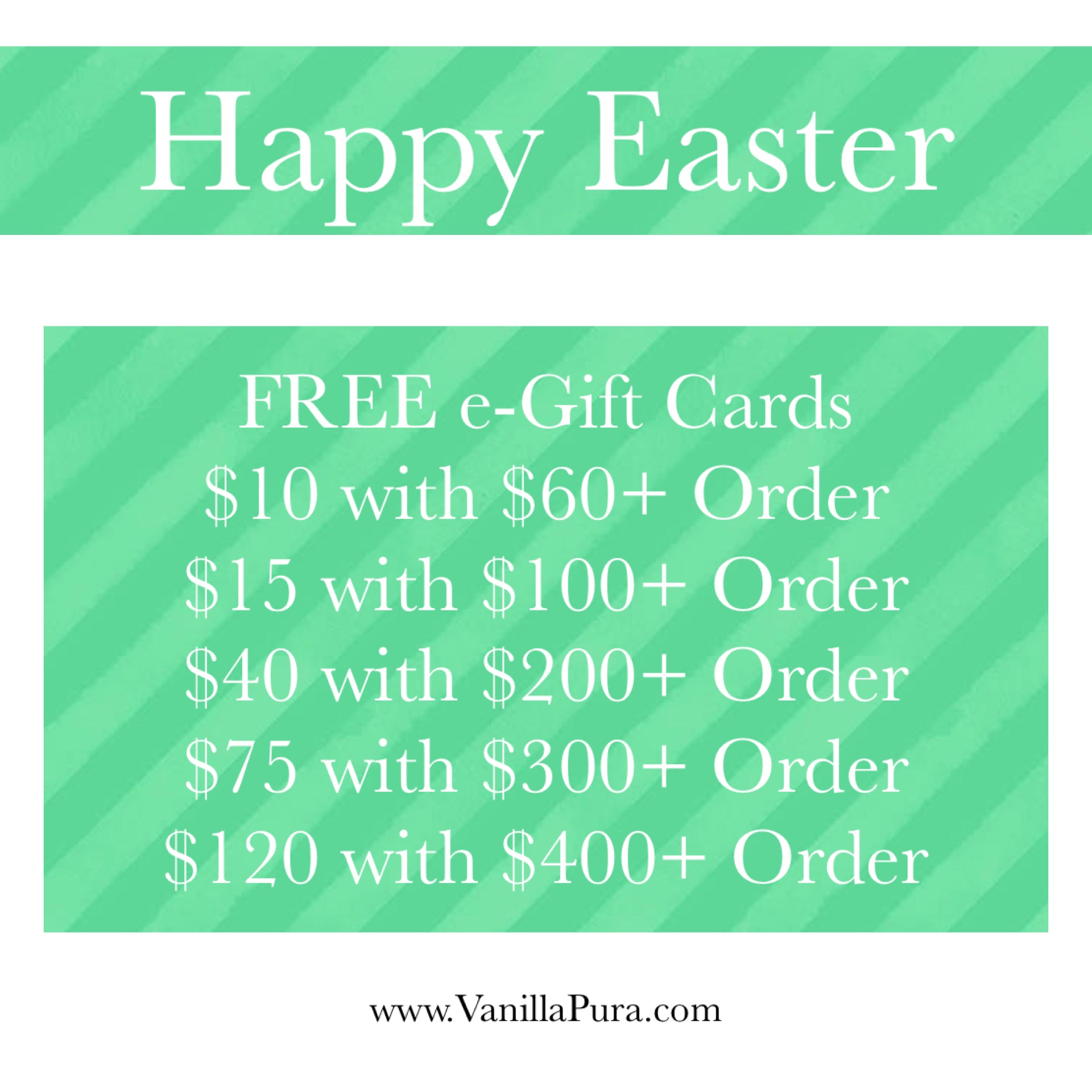 O, si lo prefiere, simplemente haga su pedido por $60, $100+ o $200+ (sin incluir la tarjeta de regalo) y envíenos un correo electrónico a support@vanillapura.com, y estaremos encantados de enviarle la tarjeta de regalo por separado sin costo alguno. .