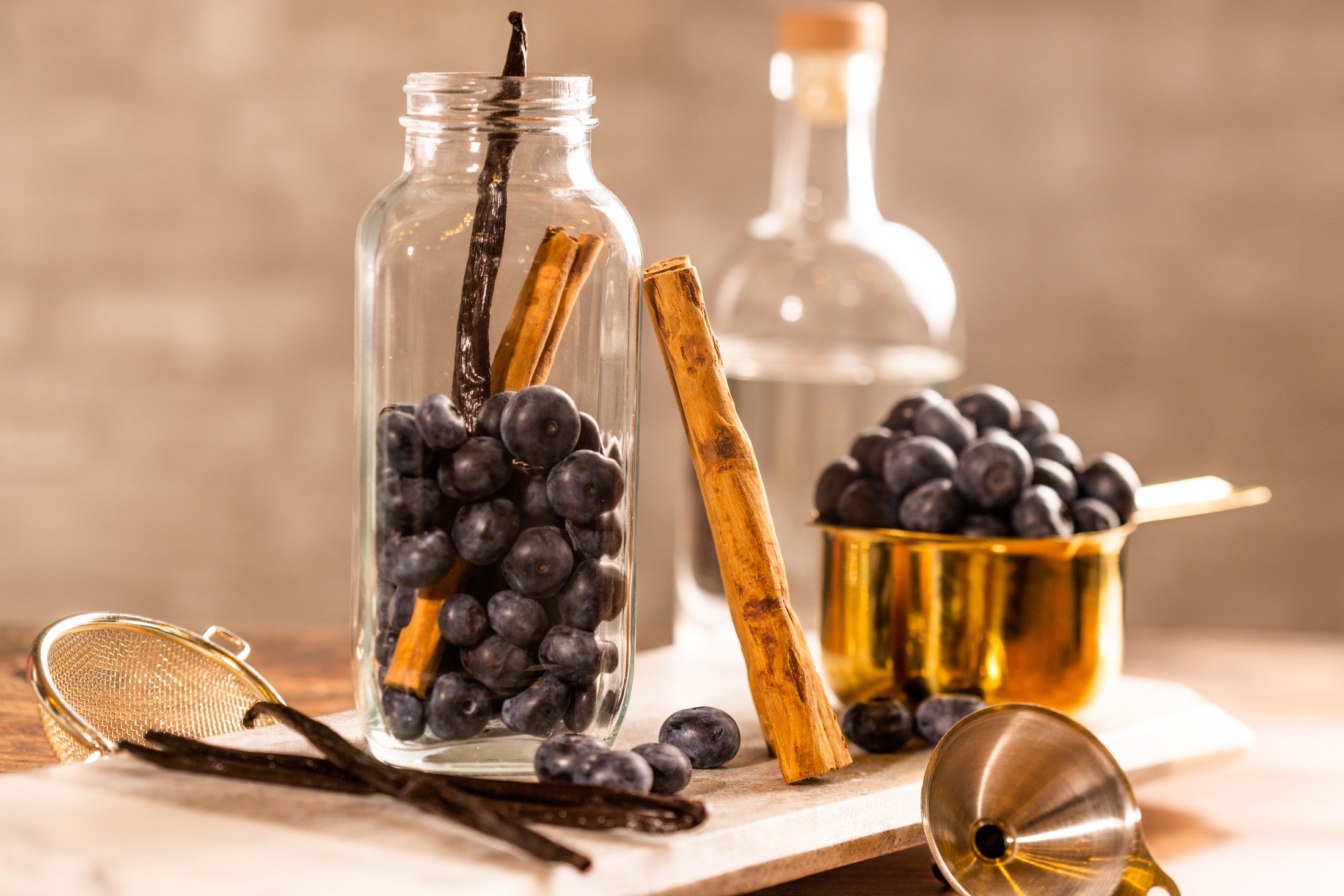 Faire de l'extrait de vanille est simple : il suffit d'ajouter des haricots, du spiritueux et un couvercle... puis d'attendre un an. Vous devrez peut-être couper vos haricots en morceaux plus petits pour les mettre dans votre bouteille. Nous recommandons également de trancher la gousse du haricot au milieu afin que les graines à l'intérieur du haricot soient entièrement exposées. (Cela équivaut à une extraction plus rapide). Une fois chaque flacon rempli, conservez l’extrait de vanille dans un endroit frais (environ 65 degrés) et à l’abri du soleil. Regardez l'extrait se transformer lentement en ambre foncé au fil du temps.