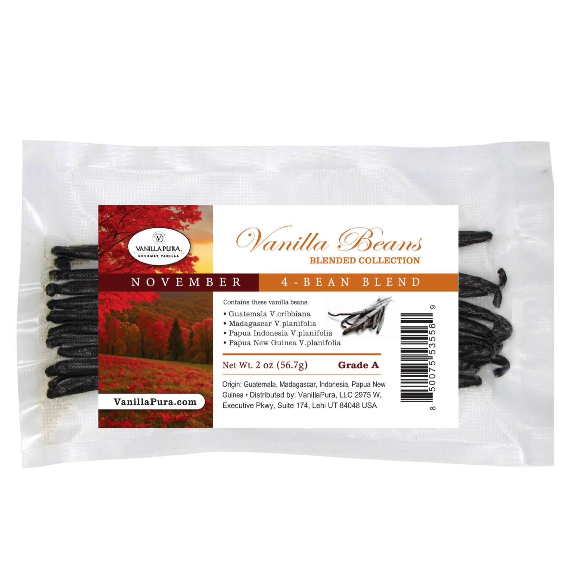 Origines de la vanille : Peut inclure des gousses de vanille du Mexique, du Pérou, de l'Équateur, de l'Inde, du Costa Rica, d'Hawaï, de Madagascar, du Sri Lanka, de l'Ouganda, de la Tanzanie, de l'Ouganda, de la RD du Congo, de la Réunion, des Comores, de Maurice, de la Réunion, des Tonga, des Marquises, de l'Indonésie, de la Papouasie-Nouvelle-Guinée, Ouganda et autres.