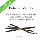 Nos gousses de vanille péruvienne Rioja sont très grasses et riches en vanilline. Ils sont gros, généralement entre 5 et 8 pouces de long et ont une couleur brun foncé. Il peut y avoir seulement 2 à 3 haricots par once et, dans de rares cas, seulement 1 haricot par once.