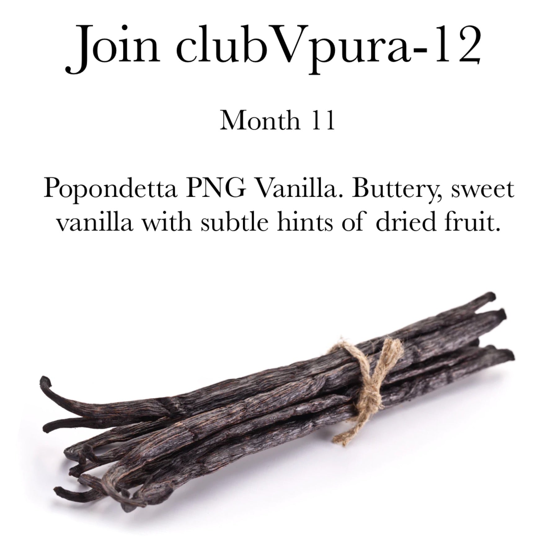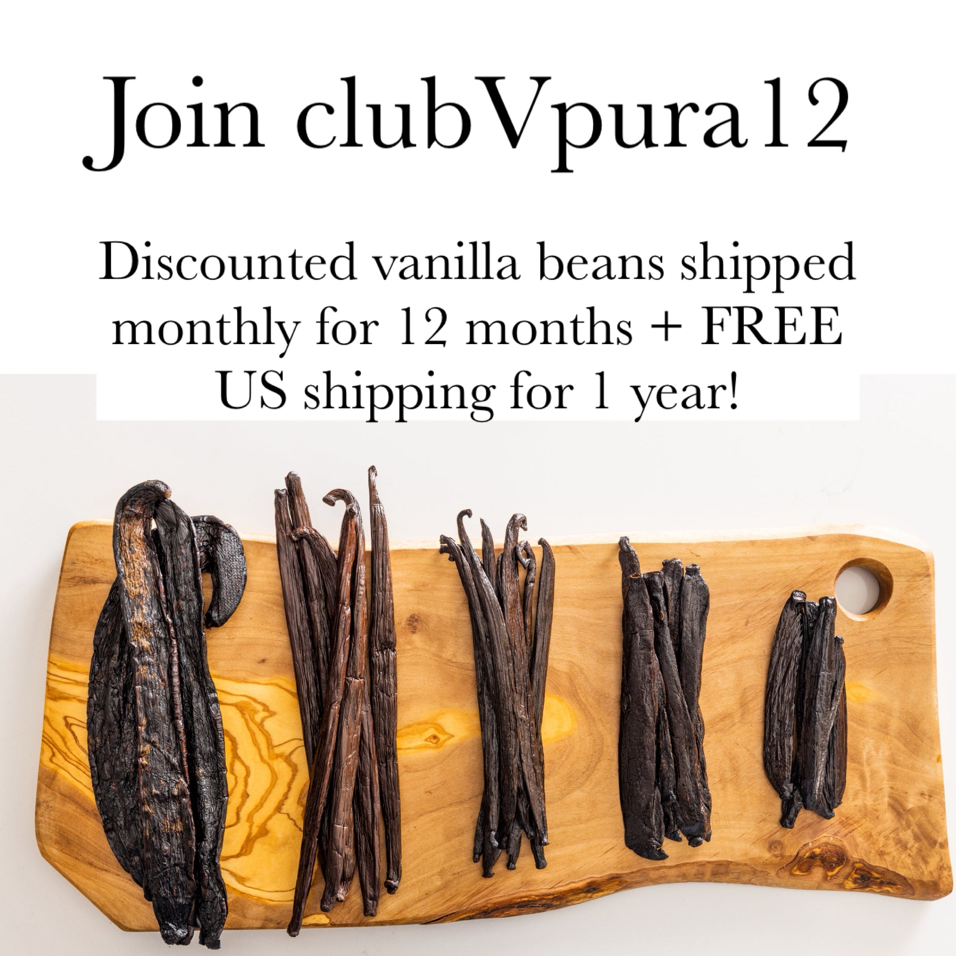 The clubVpura12 Group Buy Vanilla of the Month program is your passport to exploring premium vanilla beans from around the globe. Each month for 12 months, you'll receive hand-selected, Grade A vanilla beans from a different origin—delivered right to your door at an exclusive group buy price.