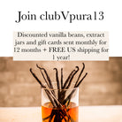 An All New clubVpura - 13 Items Sent to You Over 12 Months Including 3 Bean Blends, 50% off Avera Bottles and Discounted Gift Cards to choose your own vanilla beans. Plus FREE US SHIPPING on every order you place for more than 1 year.